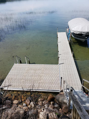 We can custom build any size or configuration of aluminum dock. You can customize your dream dock with your own layout and materials. All Waterfront Recreational aluminum docks are constructed with high quality materials and workmanship. All docks are fabricated at our shop in Vergas, MN, then delivered and installed by us. Our aluminum docks are high quality, low maintenance and will enhance your lakeshore property and enjoyment.